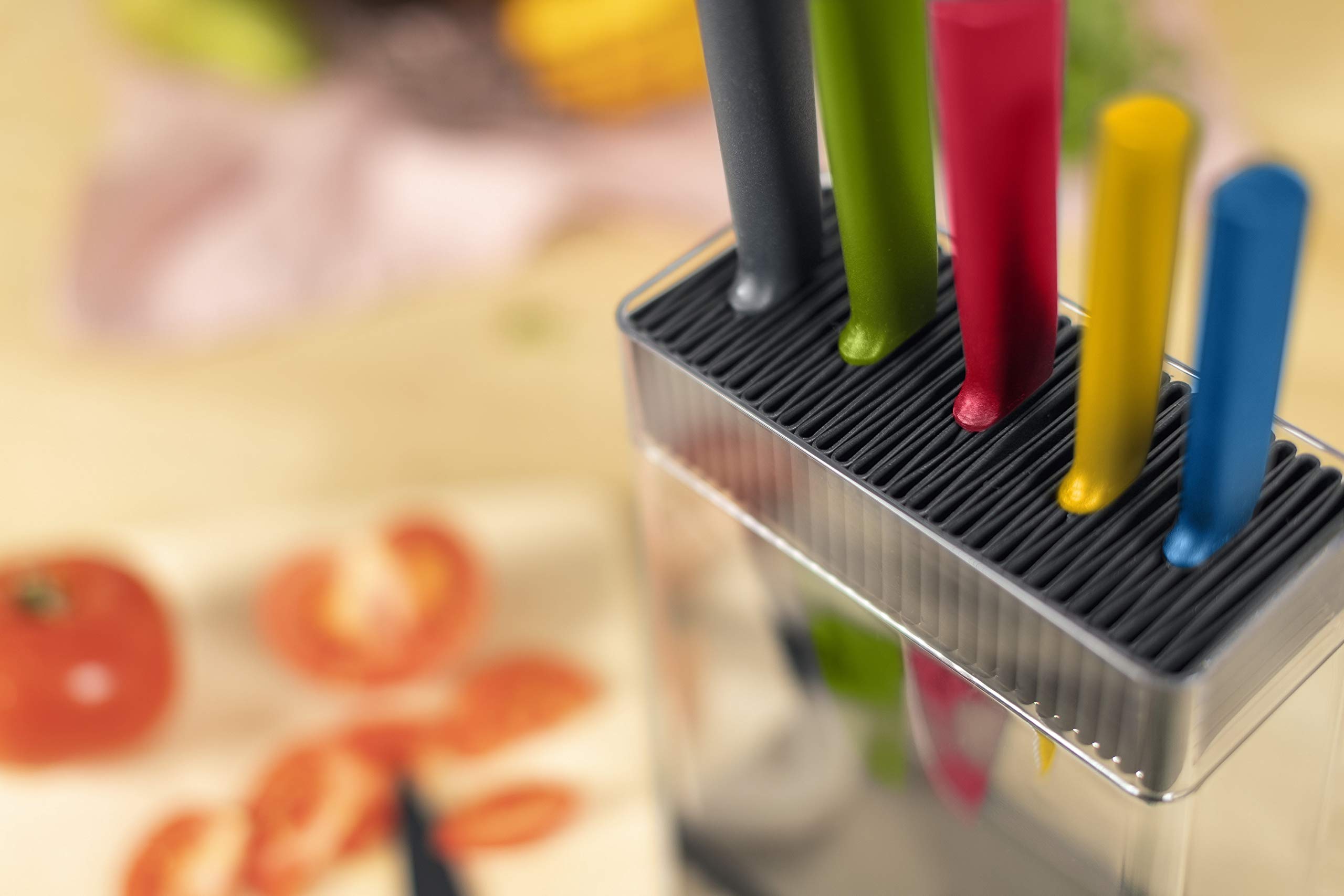 - Ein Set besteht aus: Messerblock Clear, Colori+ RĂĽstmesser, Colori+ RĂĽstmesser gezackt, Colori+ Allzweckmesser, Colori+ Santokumesser, Colori+ Kochmesser und Colori+ Brotmesser